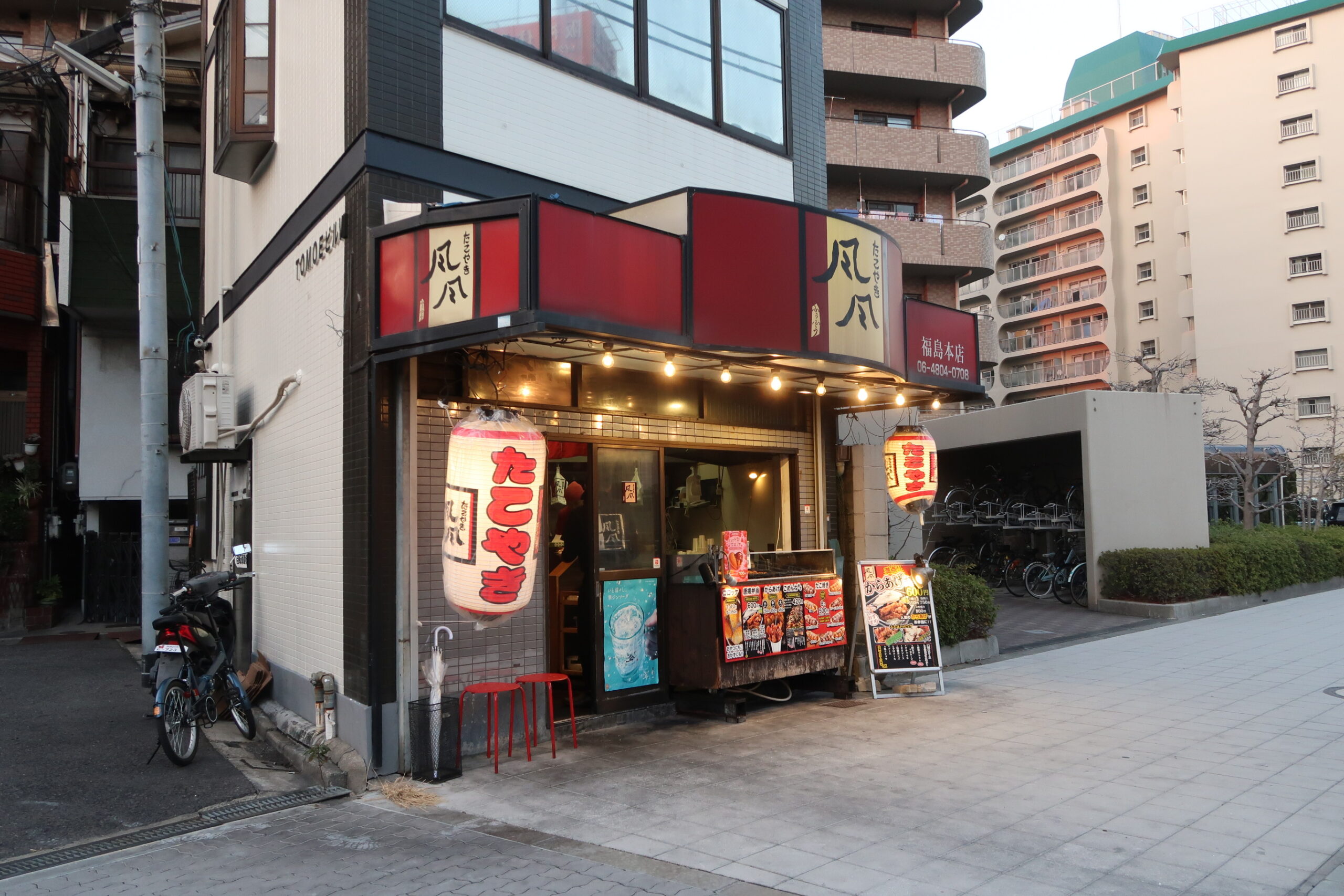 関西に住んでいる人なら、一度は目にしたことがあるのではないか―――「たこやき風風」。関西圏に30店舗以上を展開し、すべての店舗が直営。駅前や商店街、幹線道路沿いなどに出店し、赤を基調とした看板と提灯が街を照らす。たこ焼き台に立つスタッフの元気な呼び込みも印象的だ。そんな「風風」の本店が、大阪市内を北西?南西に結ぶ北港通り沿いに位置する「たこやき風風 福島本店」である。