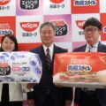 右から八尾文二郎社長、菊地さん、長田副本部長