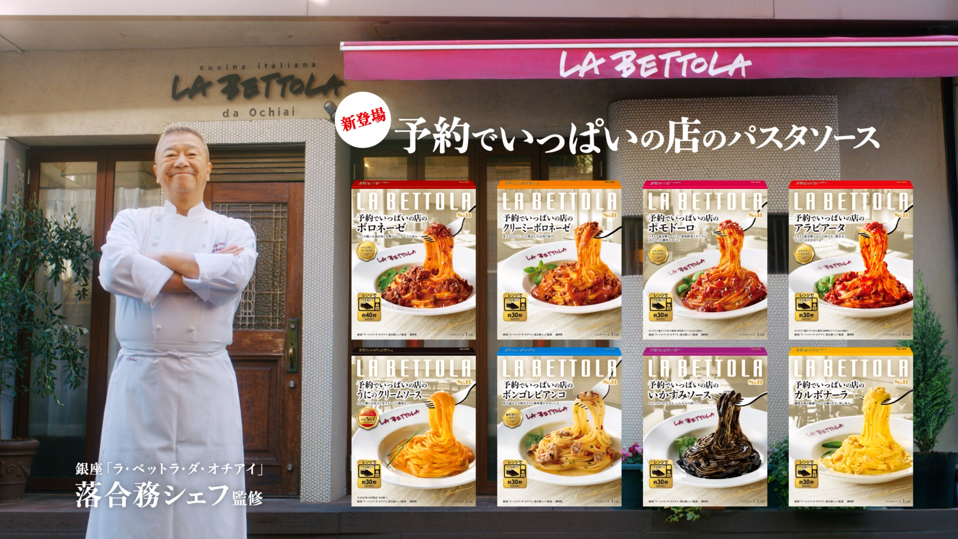 本シリーズは、銀座の名店ラ・ベットラ・ダ・オチアイのオーナーシェフであり、日本イタリア料理界を代表する存在として知られる落合務氏が監修。家庭で手軽に“名店の味”を再現できる商品として長年支持を集めてきた。今回のリニューアルでは、味わいのブラッシュアップに加え、白を基調とした華やかなパッケージへ刷新し、全8品のラインアップを展開する。