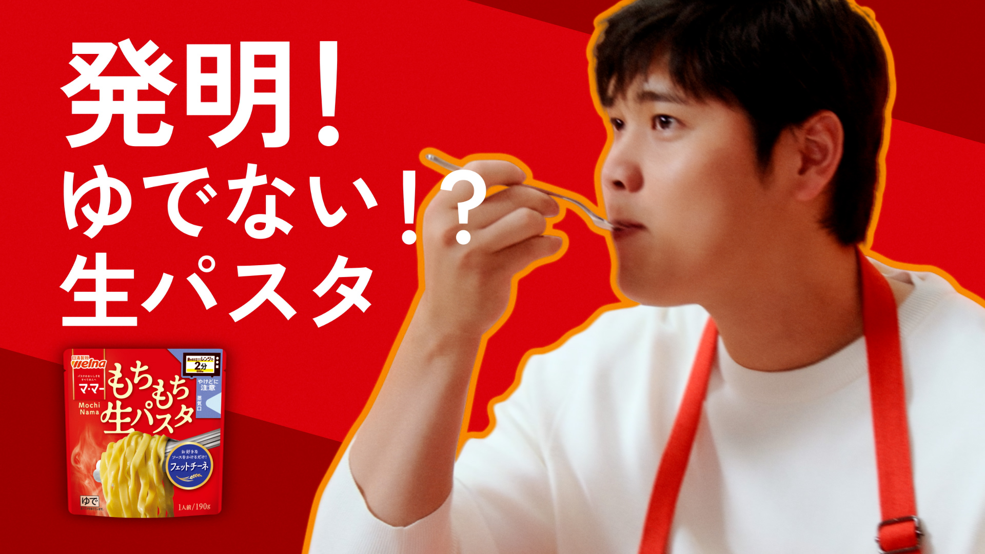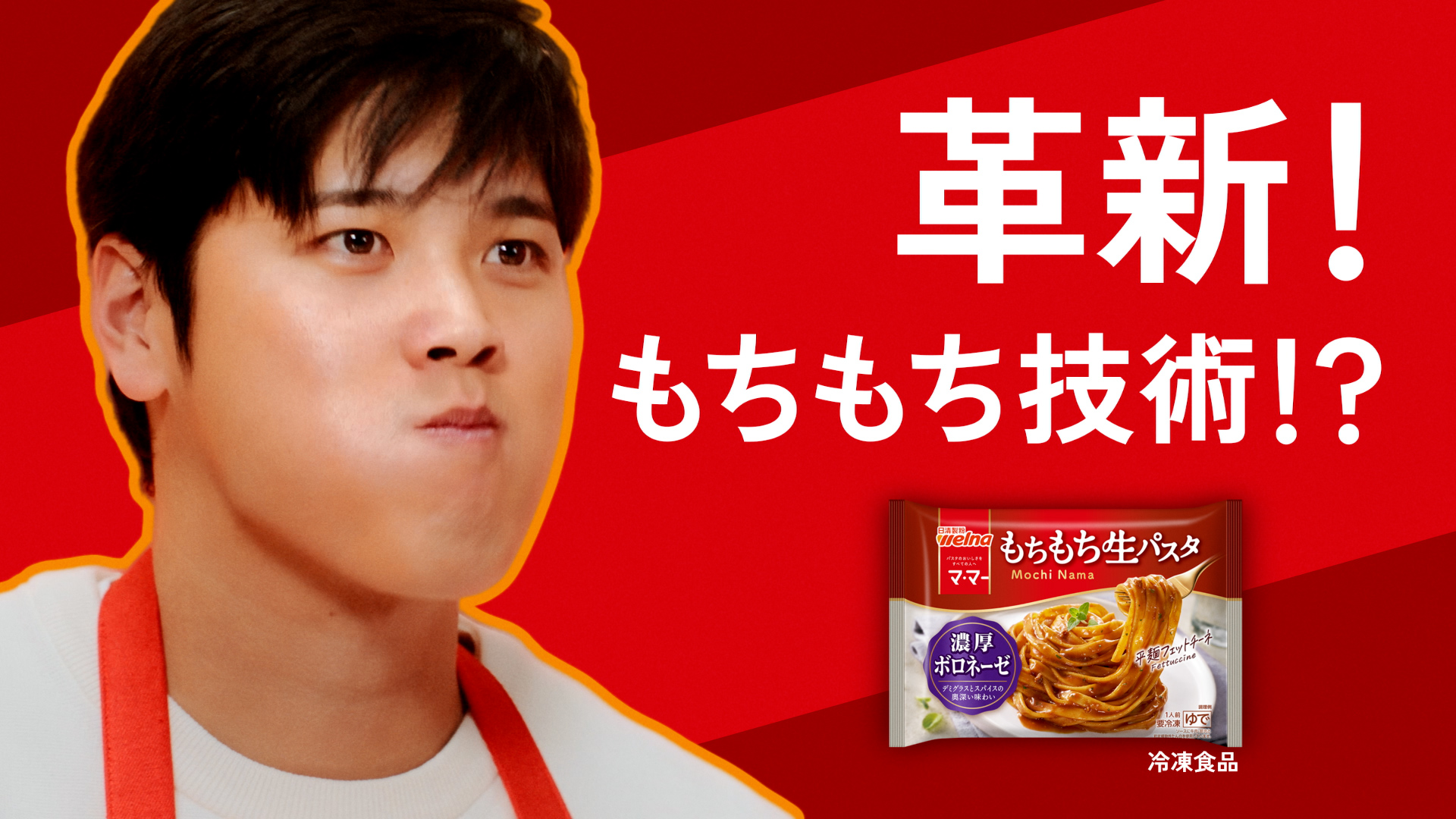 日清製粉ウェルナは、大谷翔平選手を起用した新CMを10月5日から公開する。今回、大谷さんが紹介するのは、生パスタ。今秋、常温と冷凍の両カテゴリーから発売した、もちもち食感の生パスタ製品の魅力をアピールする。“おうちで生パスタ時代はじまる。”をキャッチコピーに、3本の新CM「大谷翔平、マ・マー 生パスタ宣言」篇、「大谷翔平、マ・マー もちもち生パスタ新発売」篇、「大谷翔平、マ・マー 冷凍もちもち生パスタ新発売」篇が全国で放映される。