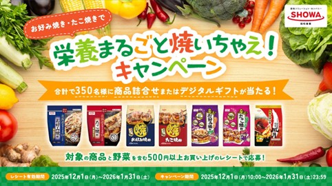 寒くなると、なぜか恋しくなる“粉もの”。じゅわっとキャベツの甘みが広がるお好み焼き、アツアツとろーりのたこ焼き…。そんな季節にぴったりのうれしいキャンペーンが、昭和産業から始まります!「お好み焼き・たこ焼きで栄養まるごと焼いちゃえ!」キャンペーンが12月1日からスタートする。