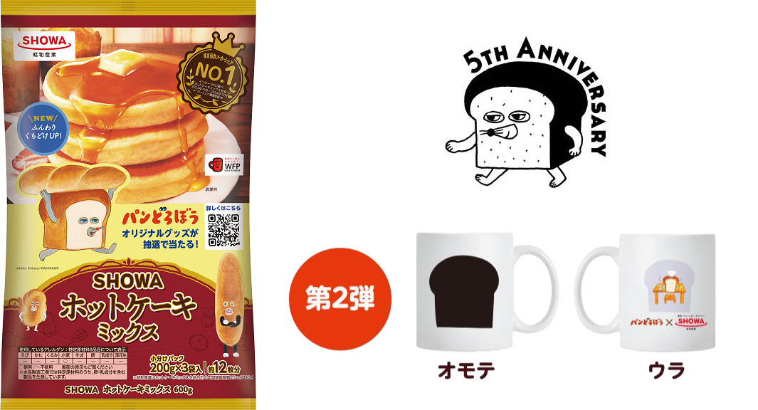 昭和産業は、人気絵本シリーズ「パンどろぼう」とタイアップした「温感マグカップ」プレゼントキャンペーン第2弾を、2025年12月1日から実施する。期間中、対象商品の「SHOWAホットケーキミックス600g」を購入した際のレシートで応募すると、抽選で300人にオリジナルデザインの温感マグカップが当たる。