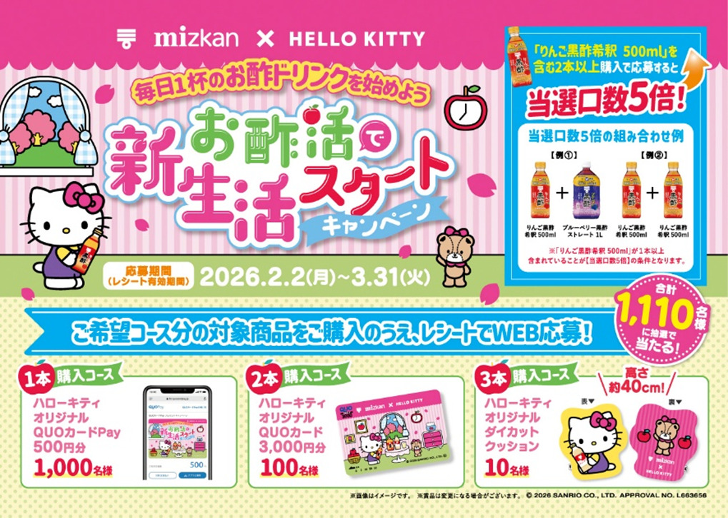 Mizkanは、大人気キャラクター『ハローキティ』とのコラボレーション企画第2弾として、「お酢活で新生活スタートキャンペーン」を2月2日より開始する。