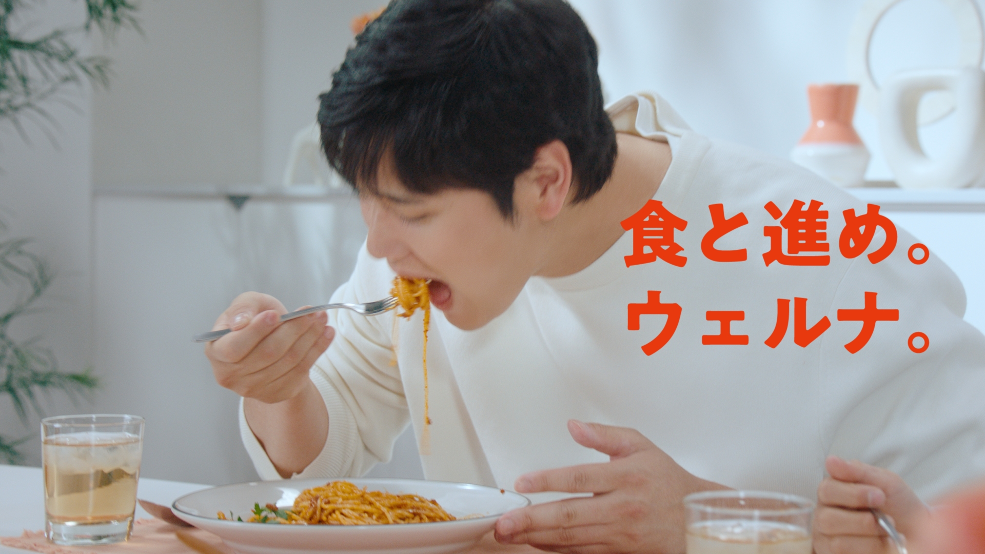 最後は「マ・マースパゲティ」のパッケージとともに、ブランドメッセージ「食と進め。ウェルナ。」で締めくくられる。