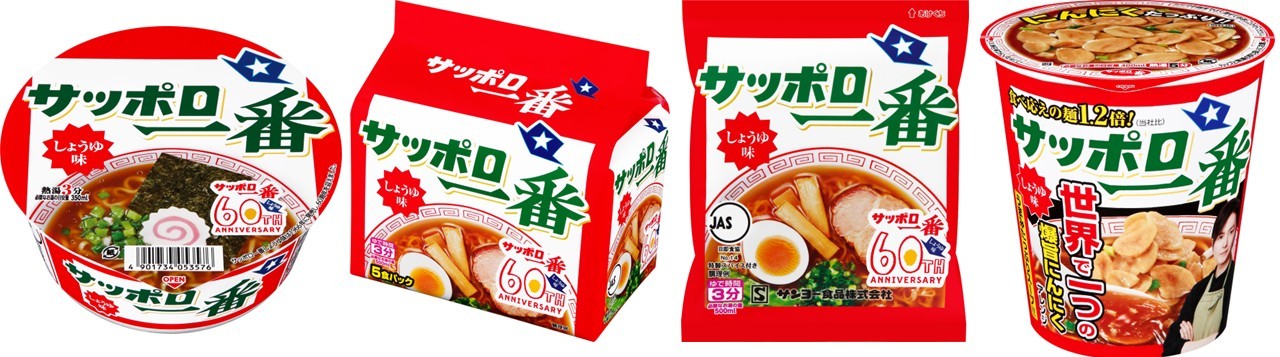 サンヨー食品は、「サッポロ一番 しょうゆ味」の発売60周年を記念し、パッケージ刷新と大型プロモーションを4月6日から展開する。累計出荷66億食を超えるロングセラーの節目に、TVCMやコラボ商品、SNS施策などを一気に仕掛け、改めて〝しょうゆ味の魅力〟を訴求する。今回の施策では、新生活シーズンに合わせ、売り場・デジタル・メディアを横断して接点を最大化し、既存ファンはもちろん若年層の取り込みも狙う。