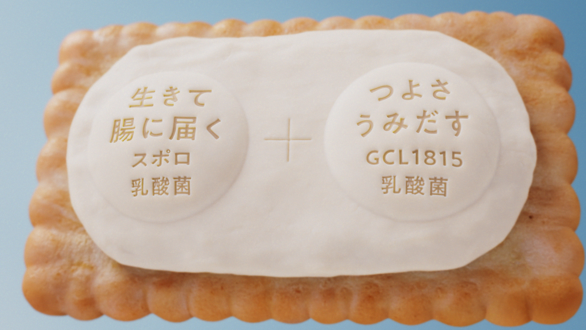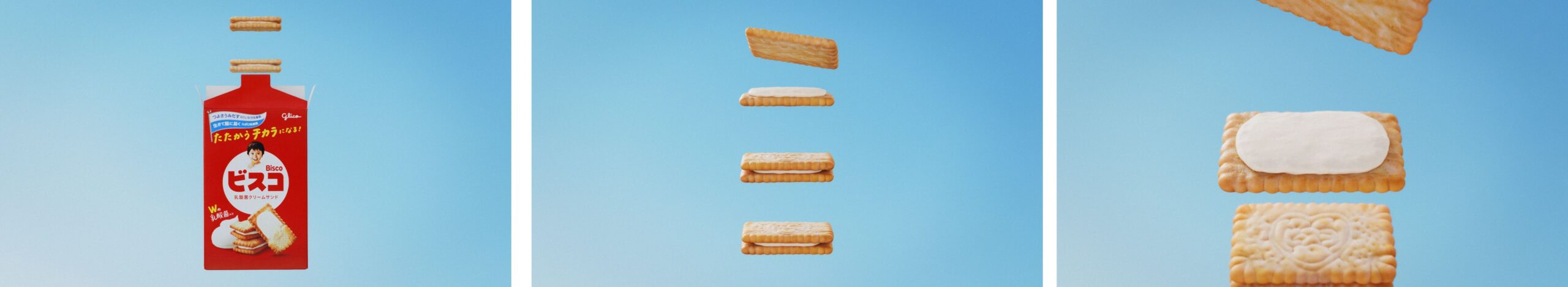 CMでは、「愛がビスコをつよくした」というコピーを通して、長年変わらず続けてきた〝子どもの成長を支えたい〟というブランドの思いを表現。香ばしいビスケットとふんわりしたクリームの映像に加え、ラストには小さな手のひらに乗るビスコを映し出し、未来へ向かう子どもたちへの願いを象徴的に描いている。