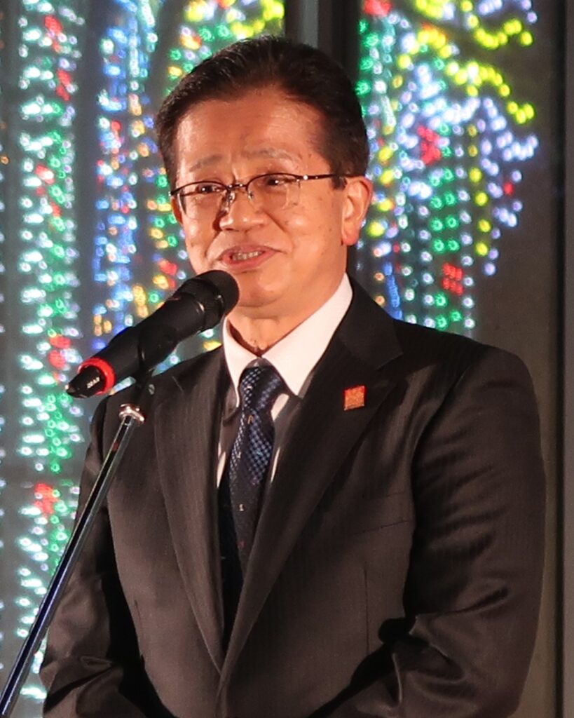 囲み取材に応じた六甲バターの塚本浩康代表取締役社長兼CEOは、初開催時を振り返り「当時はここが神戸ルミナリエの終着点で、食であたたまってもらおうと始めた。その気持ちは今も変わらない」と語り、イベントへの思いを明かした。