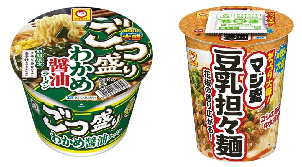 また昨年好評だった「マルちゃん ごつ盛り わかめ醤油ラーメン」(103g/90g、オープン価格)を今年も発売。メインの具材にわかめを加えたオーソドックスな味わいの醤油ラーメンを期間限定でラインアップに加え、更なるブランドの強化を図る。具材は他に、ごま、コーン入り。