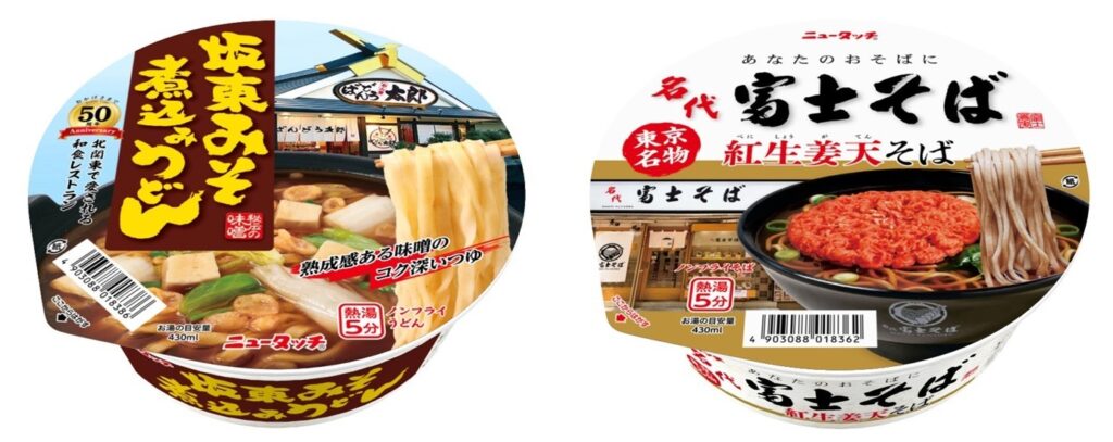 茨城県民の味「ばんどう太郎」と「ニュータッチ」が再タッグ。同日に「ニュータッチ ばんどう太郎 坂東みそ煮込みうどん」(118g/麺65g、298円)を東北・関信越エリアで期間限定品として新発売する。