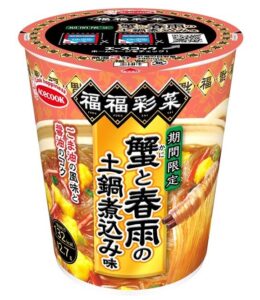 寒い季節にピッタリな「福福彩菜」が期間限定で登場。10月20日から「福福彩菜 蟹と春雨の土鍋煮込み味」(36g、221円)を新発売。