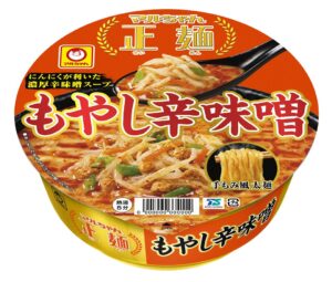 「マルちゃん正麺 カップ」シリーズ発売10周年を記念し、昨年も好評だった「マルちゃん正麺 カップ もやし辛味噌」(161g/麺75g、355円)をパワーアップして12月15日に発売。
