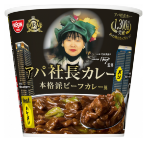 牛肉と野菜の甘みやうまみをベースに、スパイスをきかせた黒くて濃厚なルゥで、コク深くスパイシーな味わいに仕上がった。具材は味付牛ミンチ、キャベツ、タマネギ入り。パッケージは、「アパ社長カレー」をイメージしたデザインで、アパホテル社長・元谷芙美子氏の顔写真をあしらった。