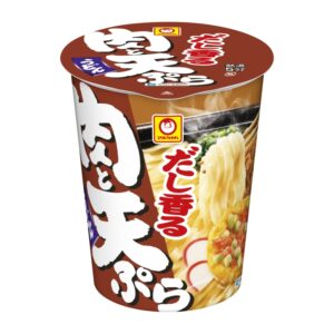 「赤いきつね」「緑のたぬき」でおなじみのマルちゃんの和風カップ麺シリーズから、牛肉と天ぷらを組み合わせた縦型ビッグサイズの商品を投入する。コシのあるうどんに、さば・昆布・煮干しをベースにした甘みのあるつゆを合わせた一杯。具材には小えび天ぷら、味付牛肉、かまぼこ、ねぎを加え、満足感を高めた。