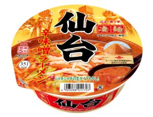 地元・宮城県の「仙台味噌醤油」製造の仙台みそを100%使用した旨辛スープが特長で、今回は具材に唐辛子を追加し、辛さと見た目のインパクトを強化。ノンフライの太麺はツルツル・もちもちとした食感で、コク深い味噌スープとの相性も良好。発売から根強い人気を誇るご当地シリーズの定番商品として、辛味噌ファンや辛いもの好きに向けて訴求する。