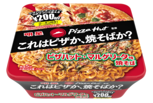 1月26日、「明星 ピザハット監修 ピザハット・マルゲリータ味焼そば」(165g/麺130g、328円)を新発売。
