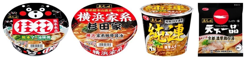 今回の刷新では、シリーズの核となるスープを中心に改良。「天下一品 京都濃厚鶏白湯」は鶏のうまみを強化、「純連 札幌濃厚みそ」はみそのコクを向上、「杉田家 横浜家系豚骨醤油」は豚骨のこってり感を高めたほか、「桂花 熊本マー油豚骨」は熊本県産醸造醤油を新たに使用し、いずれもより店舗に近い味わいへ進化させた。パッケージは従来デザインを踏襲しつつ訴求ポイントの視認性を向上。リニューアルを通しシリーズ全体・売り場の活性化を図る。
