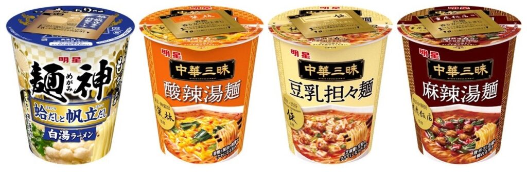 3月2日、カップ麺「明星 中華三昧タテ型 重慶飯店 麻辣湯麺」(63g/麺47g、236円)を新発売するとともに、「同 スーツァンレストラン陳 豆乳担々麺」「同榮林 酸辣湯麺」をリニューアル発売。