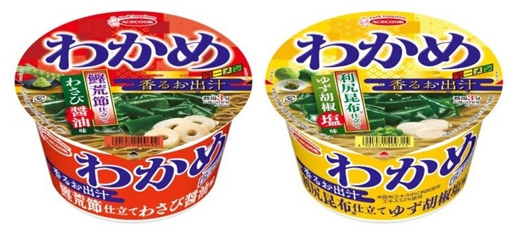 「わかめラーメン 香るお出汁 鰹荒節仕立てわさび醤油味」「同 利尻昆布仕立てゆず胡椒塩味」を新発売。各71g/麺60g、236円。