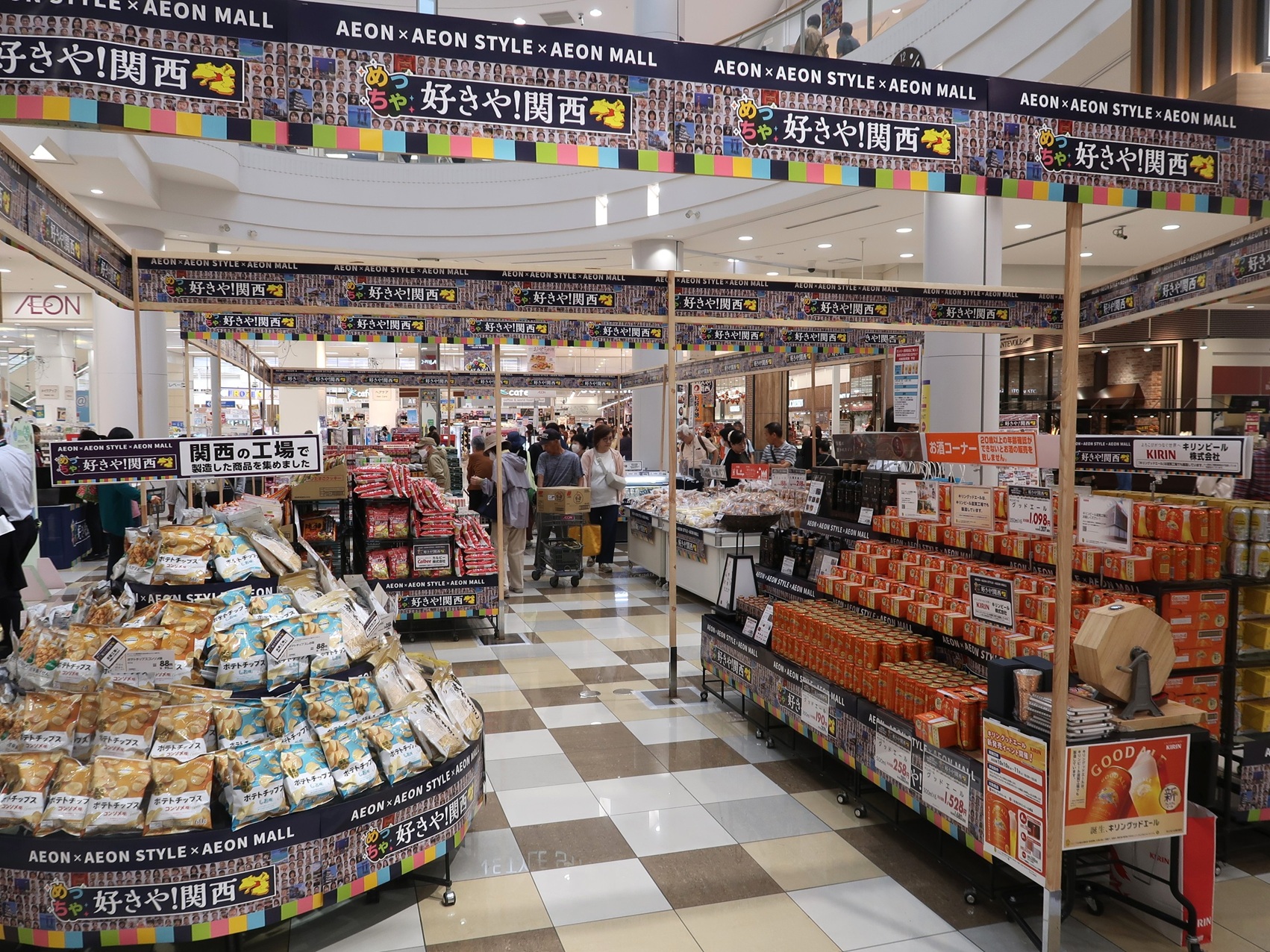 大阪・関西万博を盛り上げる企画として、大阪や関西の地元企業や同エリアで製造された商品や生鮮食品などを一堂に集めて販売するほか、多様なイベントを開催するもので、4月には四條畷、7月には京都桂川のイオンモールを拠点として開催。