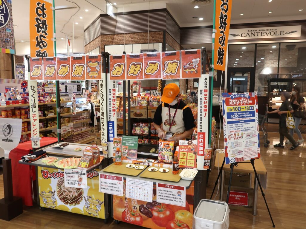 企画は大きく4つに分けられ①関西ゆかりの品ぞろえ②行政・地域イベント③集客イベント④インバウンド向け企画を内包する。イオン堺北花田店では大阪府産の水菜や小松菜、和歌山県産の柿、岸和田漁港の鮮魚などのほか、日清食品やエースコックの即席麺、蓬莱本館の豚まんなどが勢ぞろい。