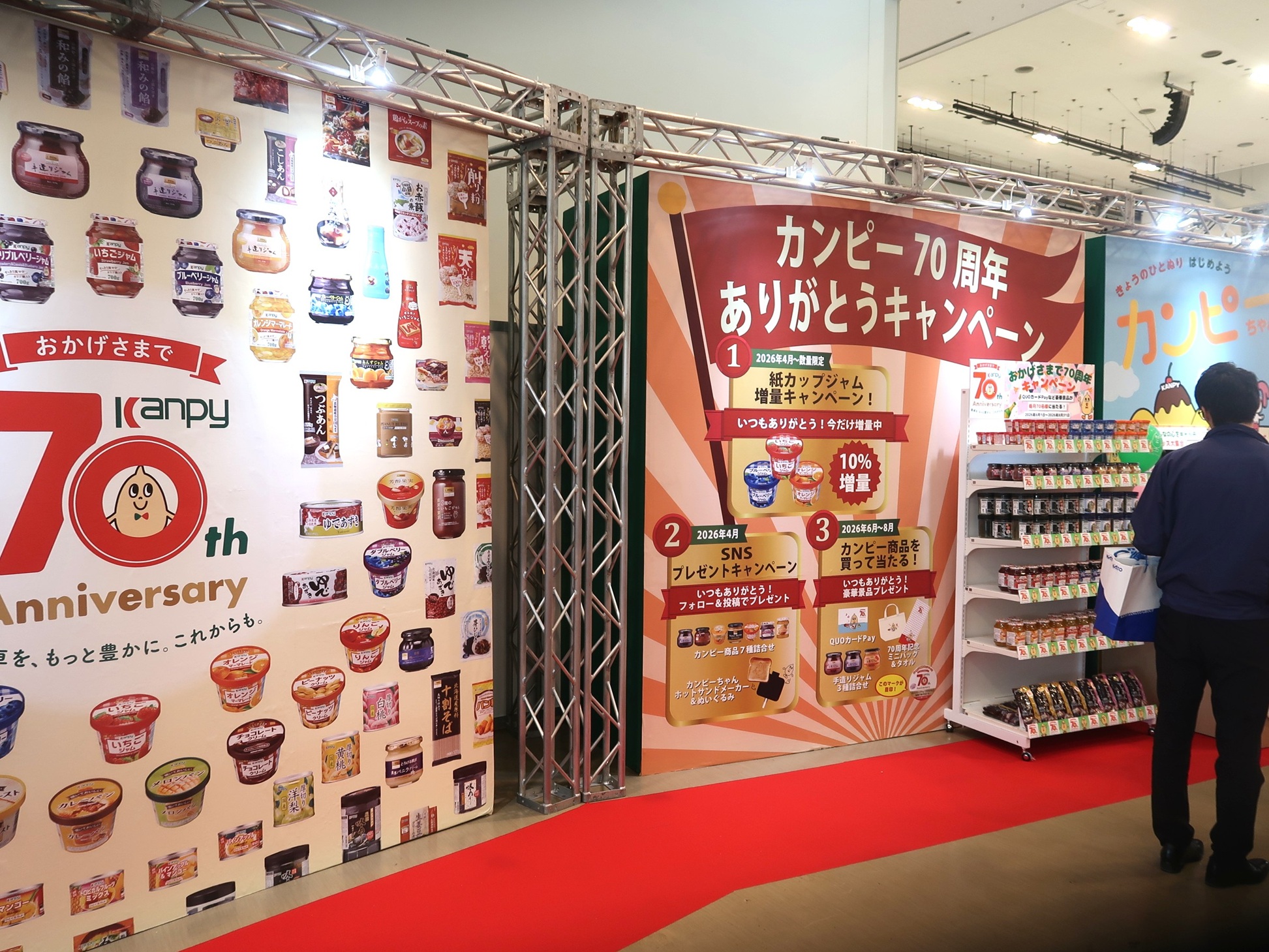 今回は何といっても「カンピー」ブランド70周年がテーマ。同社に限らず卸業がオリジナル商品として展開するブランドは、これまで価格対応型という位置付けのものが多かった。ただ、カンピーのジャム類については、既にメーカー品として一般消費者に認知されており、今後はカンピーブランド全体で“全国展開するメーカーブランド”へと進化させる。