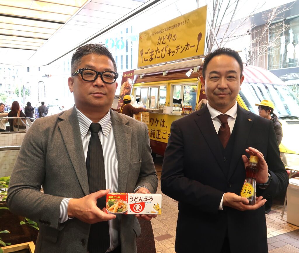 かどや製油・大平部長㊨とヒガシマル醤油・濵副支店長
