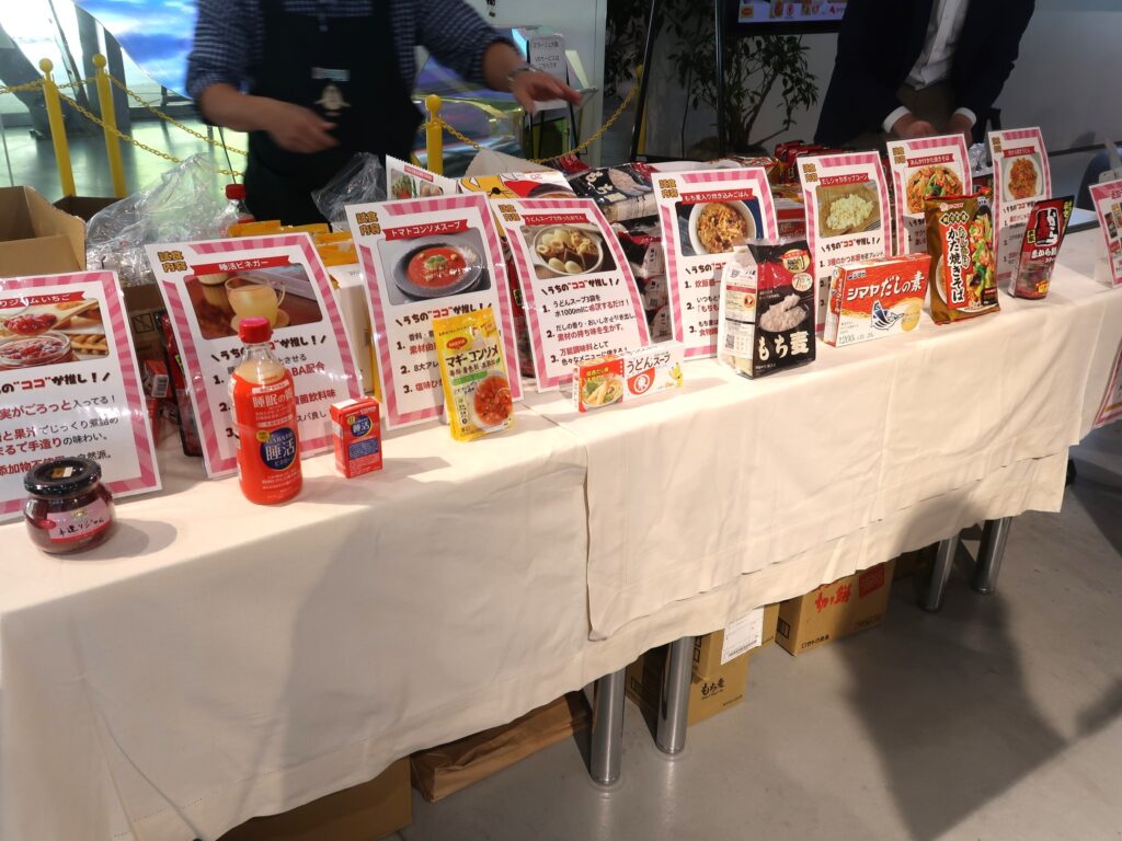 食品メーカーやスーパーマーケットなどの小売業と違い、卸業は一般的に消費者から認知されづらい、縁の下の力持ち的な存在。ただ、業界内では定期的に展示商談会を開いており、これまでBtoBで取り組んできた商品提案について、今後はBtoCの分野でも訴求力を高めるべく、今回の消費者イベントの開催に至った。関西を地盤とするメーカーや、今後関西でのシェアアップに積極的な企業として7社が参加した(参加企業=イチビキ、シマヤ、ネスレ日本、はくばく、ヒガシマル醤油、マルタイ、ヤマモリ)。