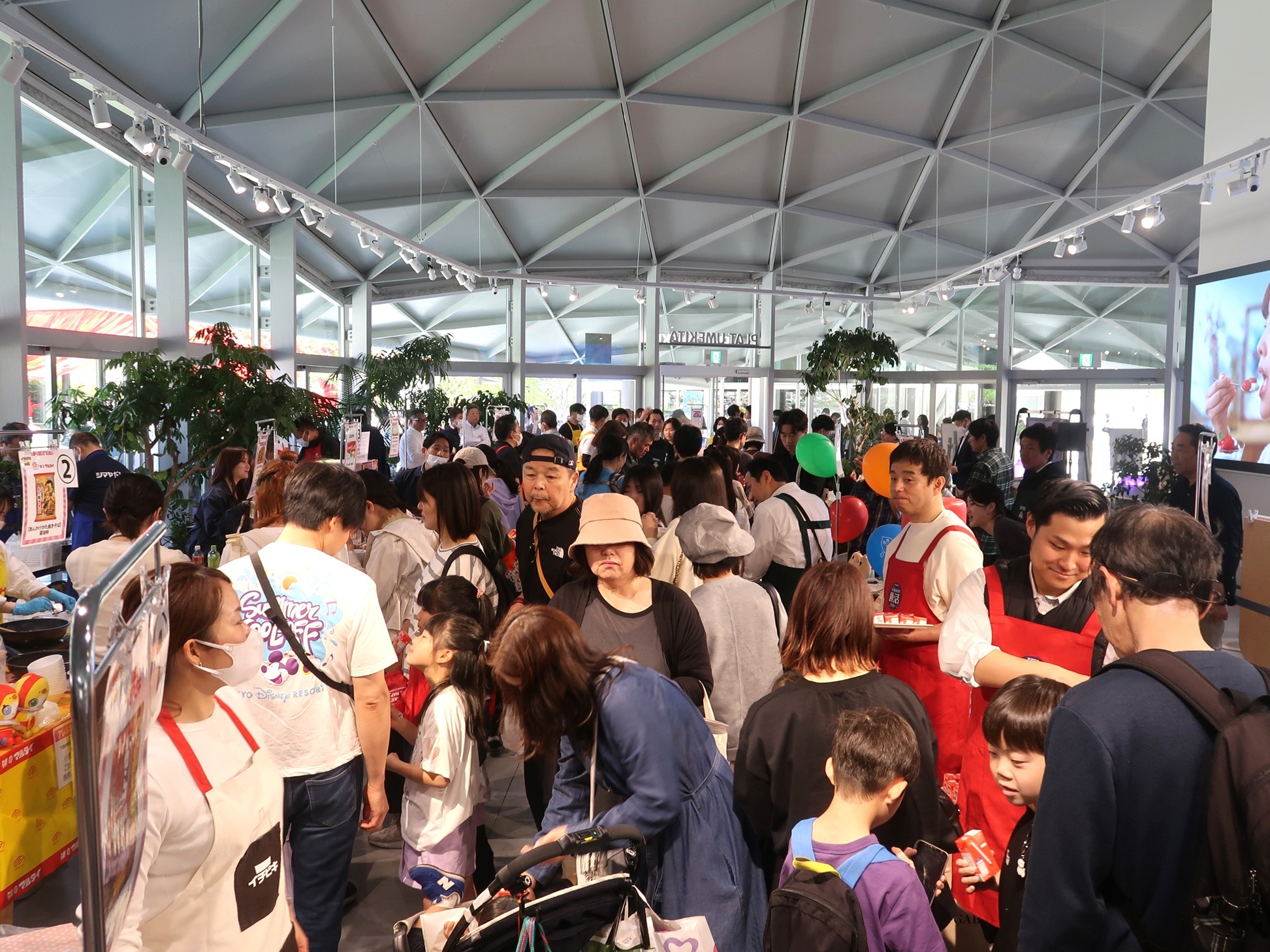 会場となったPLAT UMEKITAは、うめきた公園内に位置しており、当日は公園利用者らが詰め掛け入場制限するほどの人気をみせた。オープン以降も長蛇の列は絶えることがなく、会場内では試食や抽選会を楽しむ人で盛り上がりをみせていた。