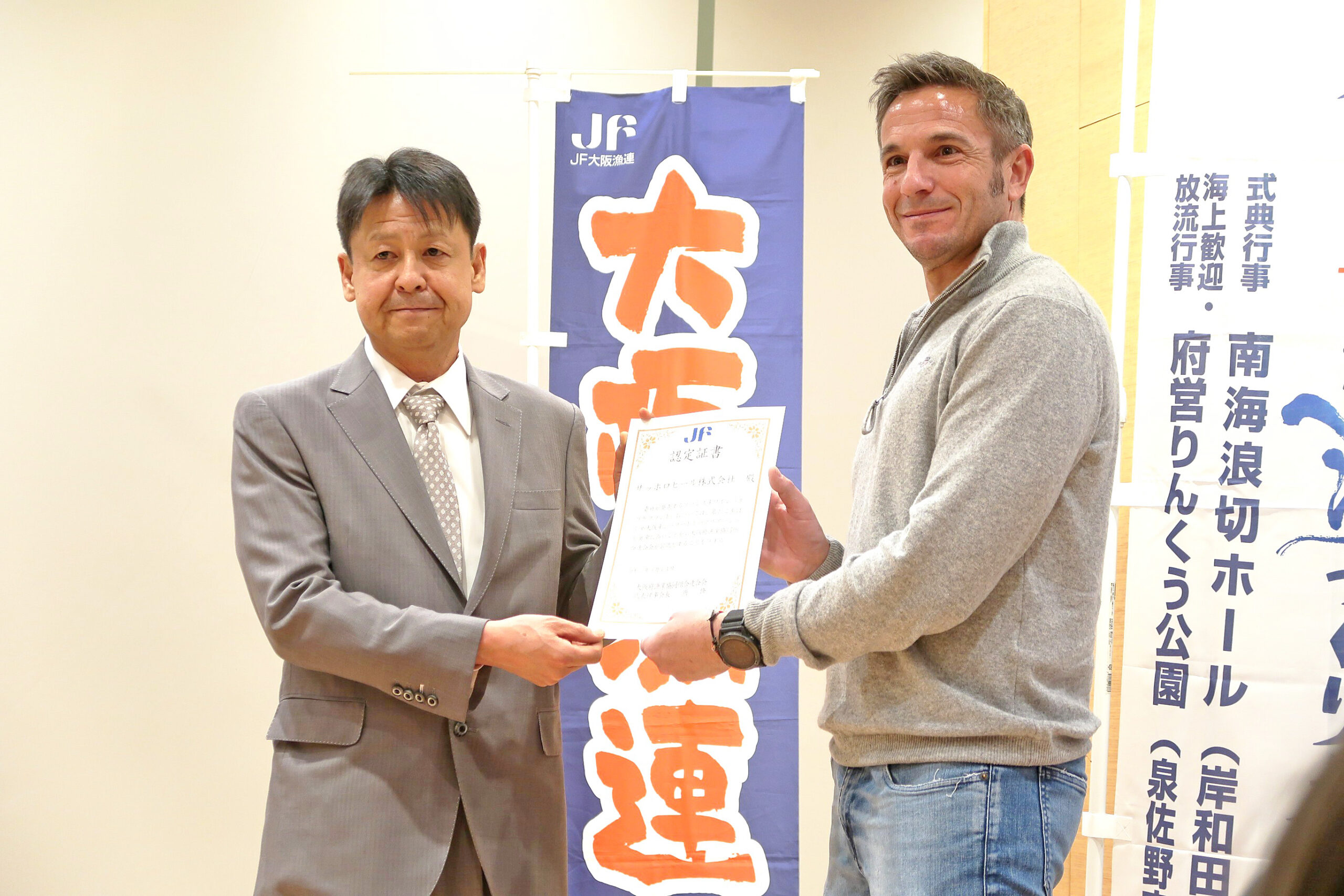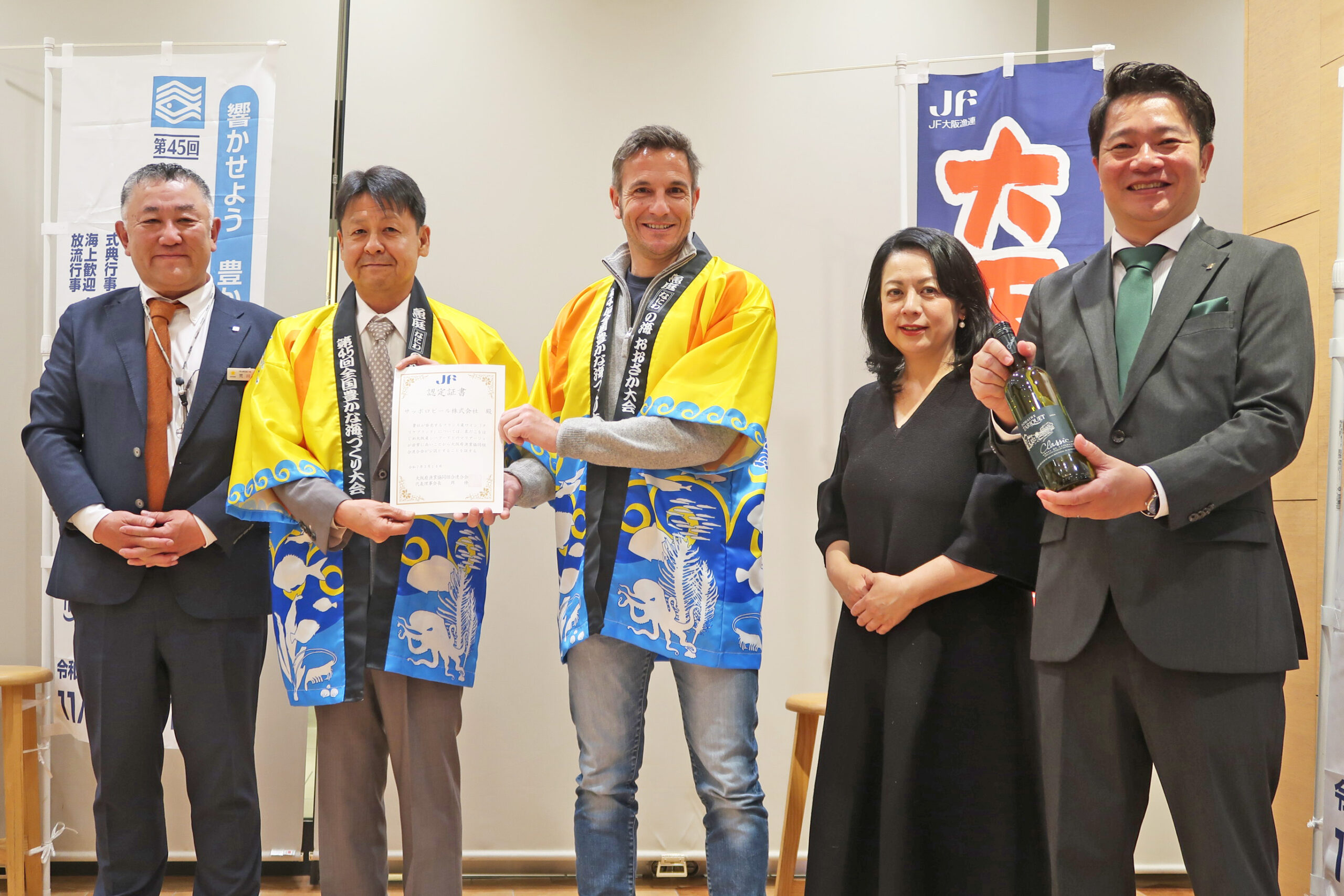 アルミン氏は「大阪は海が近く、料理を友人と楽しむ文化がある点でガスコーニュ地方と共通している」とコメント。会場では三好副会長からアルミン氏へ認定証が授与された。