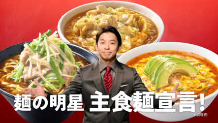 今回のCMには俳優の仲野太賀さんが登場。〝麺バサダー〟として、明星の麺のクオリティを熱弁する姿を通じて、シリーズの魅力を伝える内容となっている。撮影では「麺神」のレシピを実食し、豪快にすすり上げながら「主食になる麺」の存在感を体感。迫力ある宣言とともに、おいしそうに食べる表情が見どころとなっている。