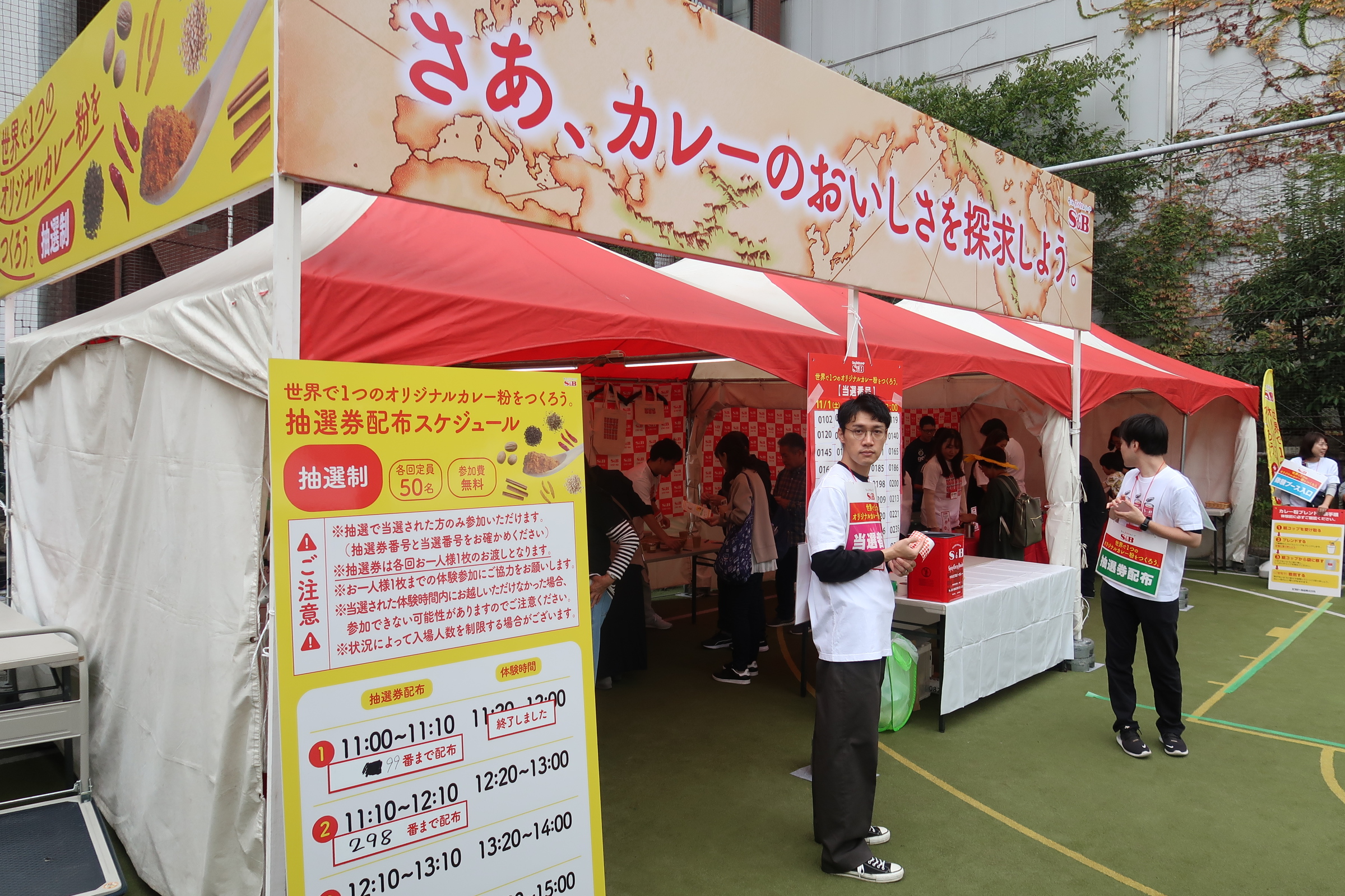 焙煎・熟成によるカレー粉の香りの違いやスパイスの奥深さが体験できる「オリジナルカレー粉ブレンド体験」企画には、多くの参加者が詰めかけた。今年は抽選券を配布し1日に5回の体験機会を提供。2日間で約500人がオリジナルカレー粉づくりを体験した。