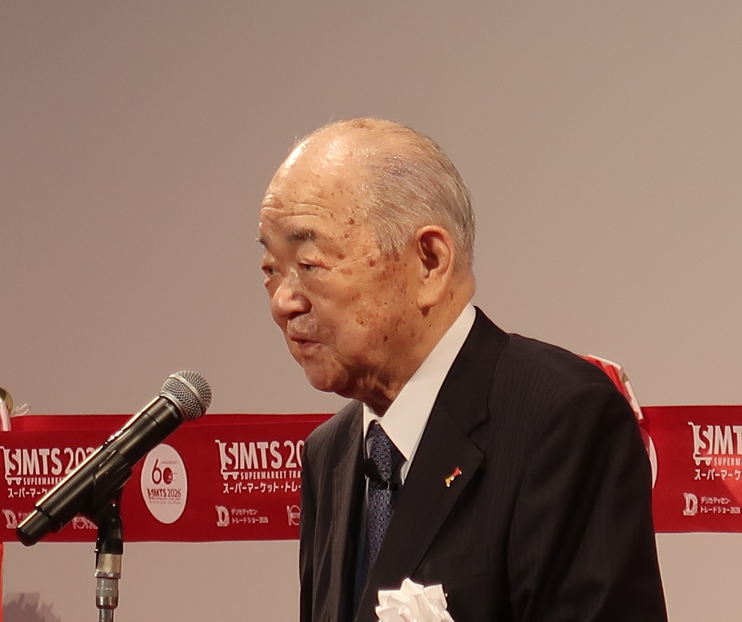 初日18日の開場に先立ち、オープニングセレモニーを実施。主催者を代表して、一般社団法人全国スーパーマーケット協会会長である横山清氏(アークス会長・CEO)が登壇した。新政権が発足し、消費税減税などへの関心が高まる中、「実際にやるのは我々。国民生活のために努力する」と述べ、生活インフラを担う小売業としての責任と覚悟を強調した。来賓として、経済産業省商務・サービス審議官兼商務・サービスグループ長の井上博雄氏、農林水産省 大臣官房新事業・食品産業部部長の高橋一郎氏があいさつ。関係者によるテープカットで展示会は盛大に幕を開けた。