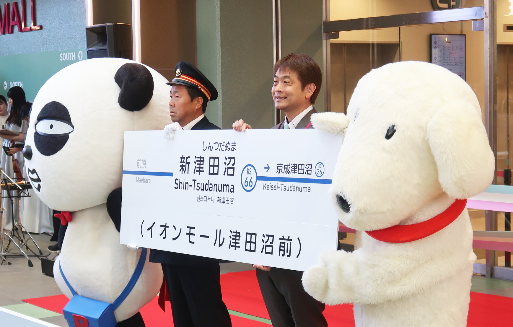 京成「新津田沼」駅に(イオンモール津田沼前)の表記が入った