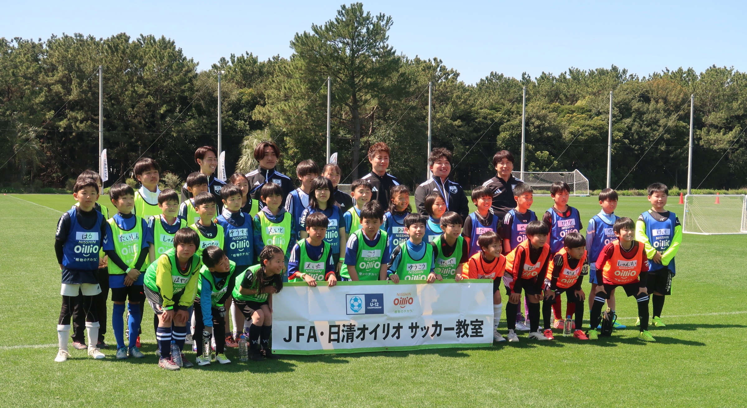 日本サッカー協会(JFA)と日清オイリオグループは4月3日、千葉市の高円宮記念JFA夢フィールドで、「U-12年代の成長とパフォーマンスを支える食と栄養セミナー&サッカー教室」を開催した。
