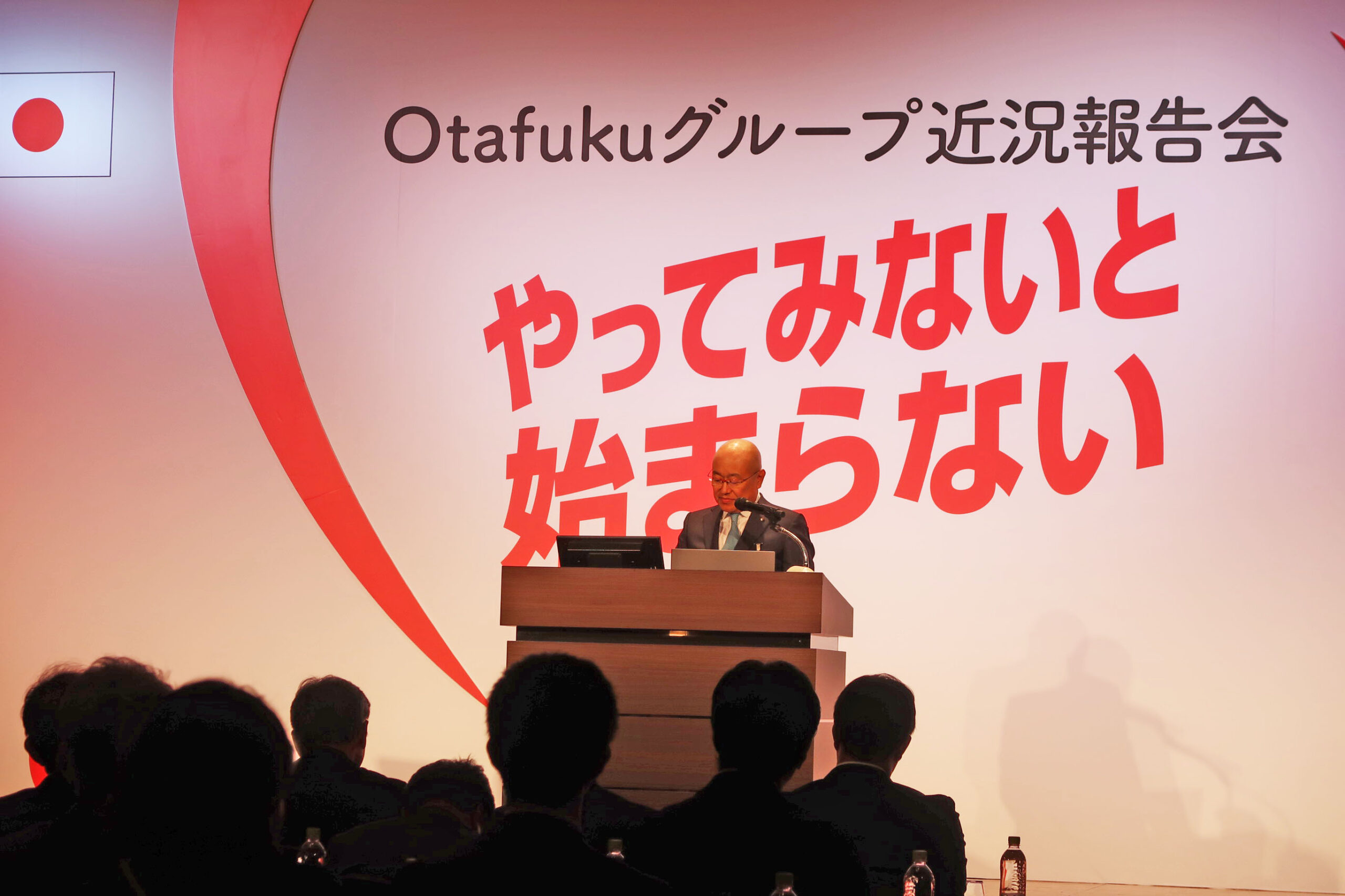 冒頭、オタフクホールディングスの佐々木直義社長が挨拶=写真。25年度の業績について「増収減益で着地した」と報告。アメリカ、中国、マレーシアを中心に海外事業が2ケタ伸長したことを増収要因に挙げ、「グローバル化の中で地盤が着々と築かれている」と今後の成長に期待を寄せた。一方で、原材料やエネルギーなどのコスト増、野菜価格の高騰が減益要因となった。