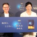 10月28日には、UCC東京本部(東京都港区)で発表会を開催。UCCジャパンサステナビリ ティ経営推進本部「YOINED」プロダクトマネジャーの小坂朋代氏は、今年の施策について「昨 年に引き続き〝飲まないコーヒー〟だからこそ実現できる、お酒との〝おつまみコーヒー〟の 提案を推し進める」と説明。特に今年の「YOINED」は、日本酒とのペアリングが絶妙なハー モニーを生み出す。会場では、日本酒事業のスタートアップ・Clear社が手がける「SAKE HUNDRED」ブランドのデザート日本酒「天彩/AMAIRO」とのマリアージュを紹介し、発表 会の参加者はその好相性を体感すると感嘆のため息がもれた。