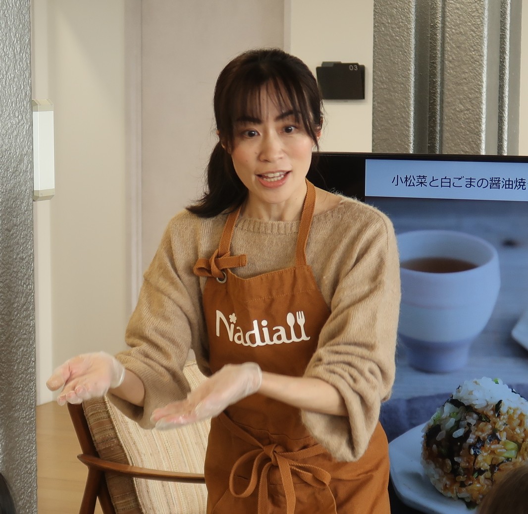 講師は、キッズ食育トレーナーとして活躍するNadia Artist・玉田悦子さん。家庭でも作りやすいメニューを親子で協力しながら調理できるよう、分かりやすい説明と実演を交えて進行しました。