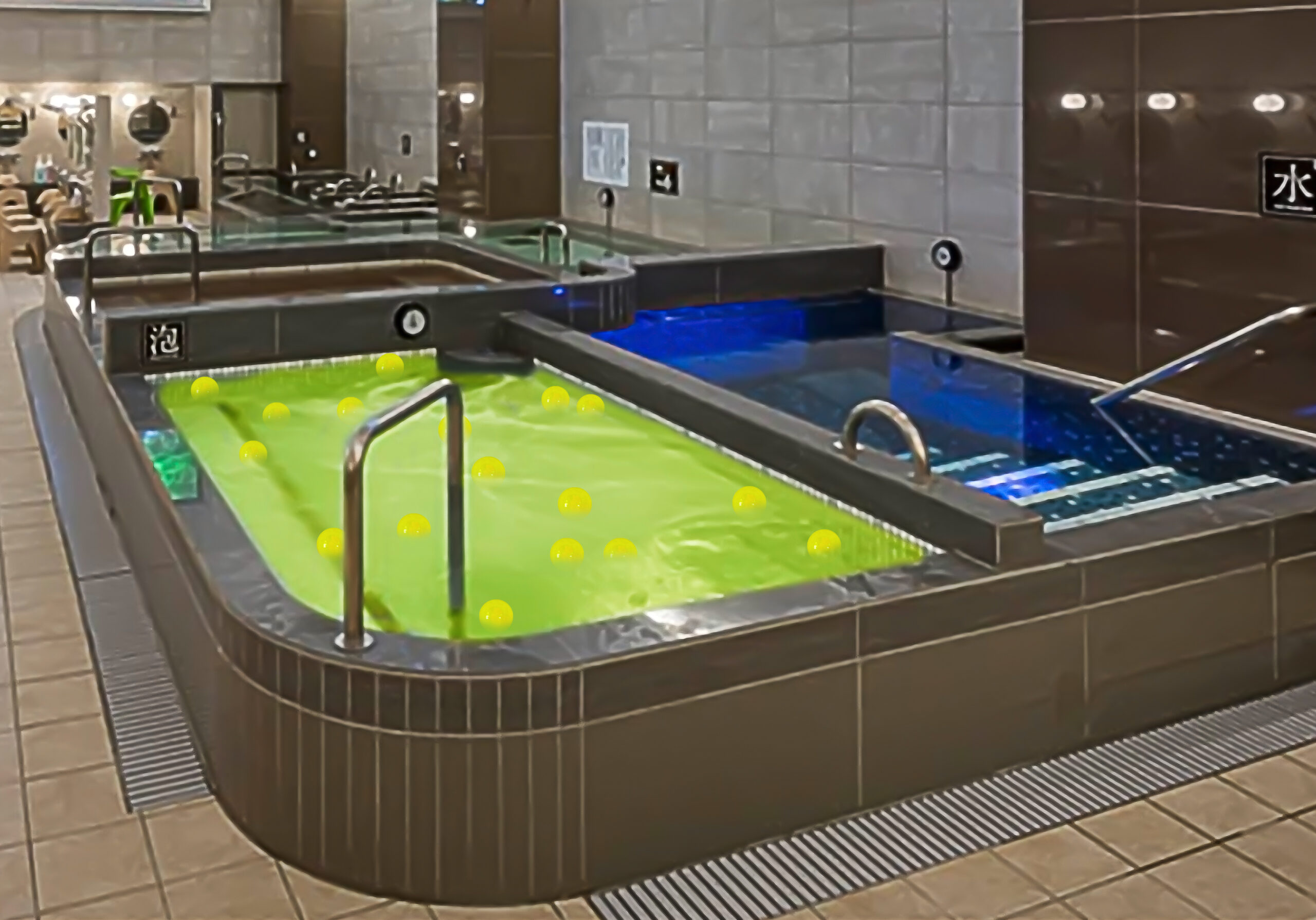 炭酸湯がレモンの香り漂う特別仕様に。レモンカラーのボールが湯面に浮かび、入浴中もレモンの爽快感を楽しめる。