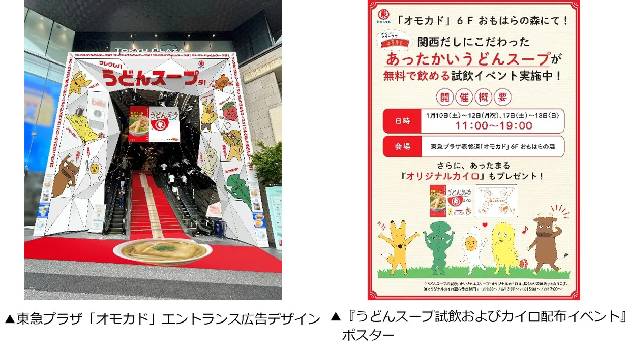 さらに、最も寒さが厳しい大寒の時季に合わせ、1月10日~12日、17日~18日の計5日間には、6F「おもはらの森」で「うどんスープ試飲およびカイロ配布イベント」を開催。温かいスープとオリジナルカイロで、心も体も温まるひとときを提供する。