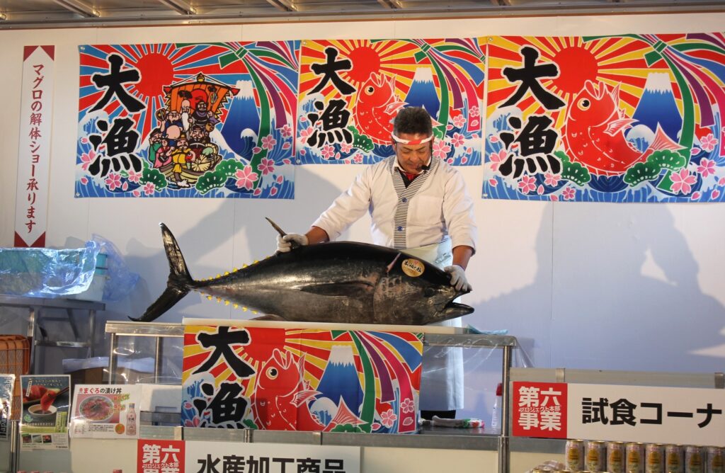 提案を強化している地域メーカーは107社が出展、初出展は27社に上った。高知家のうまいもの大賞2026受賞商品を紹介したほか、屋外の試食コーナーでは本マグロ・ブリの解体ショーをはじめ、高知県のソウルフード・郷土料理をふるまい地元の味わいをアピール。これは同社が第六事業プロジェクトとして取り組むもので、代表的なカツオは生鮮素材としてだけでなく、コロッケメニューを展開するなどデリカ提案も。室戸のマンボウの唐揚げも引き続き展開し好評だった。