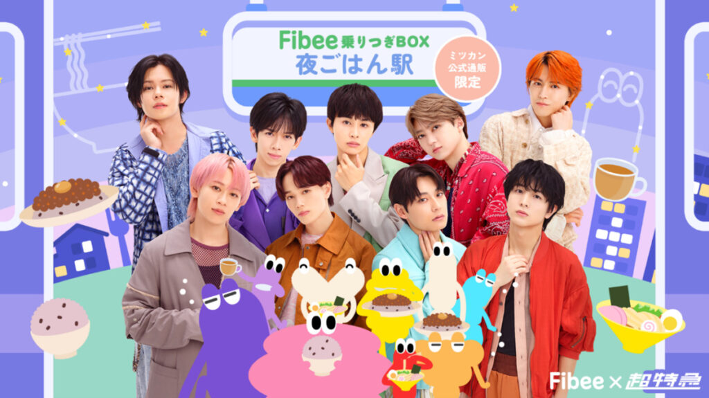 ミツカンは、発酵性食物繊維に着目したブランド「Fibee(ファイビー)」と、人気アイドルグループ・超特急によるコラボ企画「ファイビーで超せいちょう」の第2弾として、限定セット「Fibee乗りつぎBOX 夜ごはん駅行き」を、2026年2月3日(火)12時からミツカン公式通販限定で販売する。
