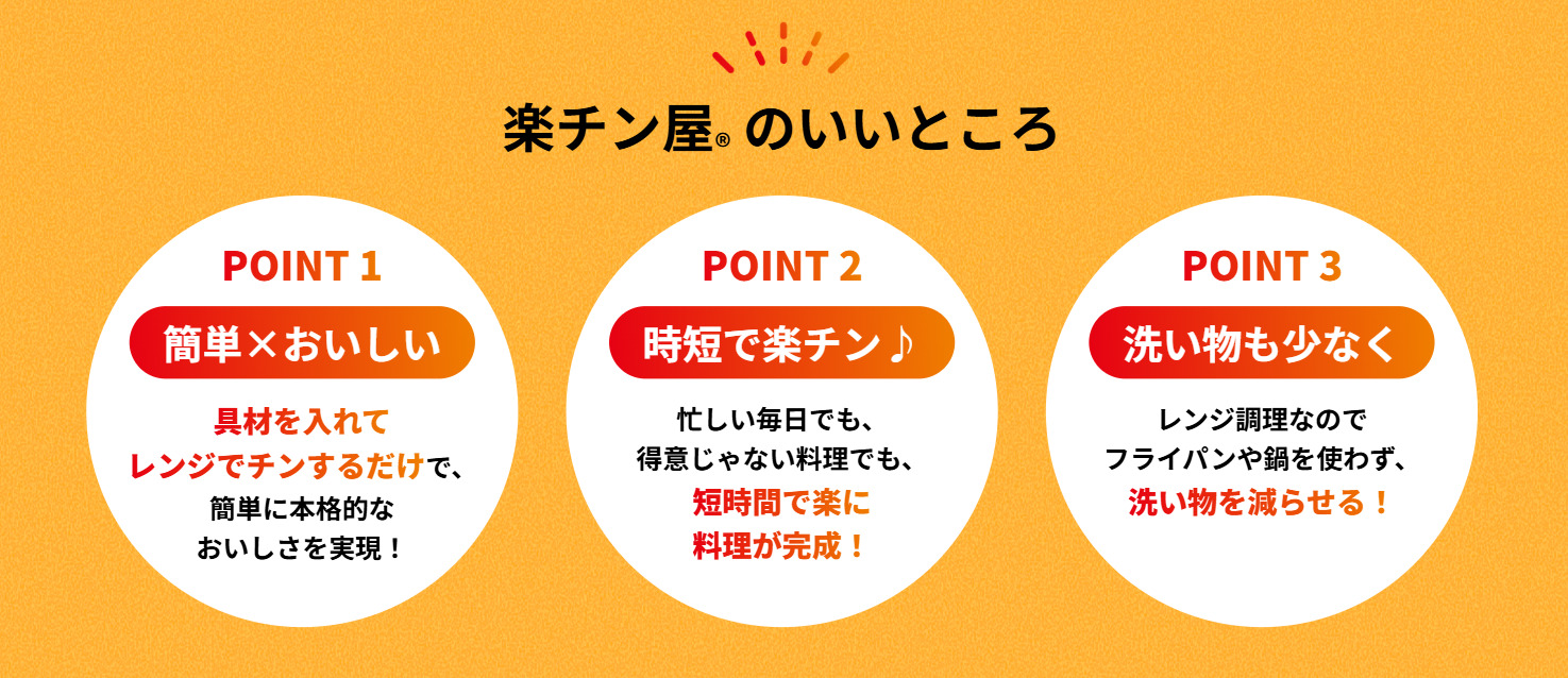 『楽チン屋®』シリーズは、具材を入れて電子レンジで加熱するだけで本格的な一品が完成する、電子レンジ専用調味料シリーズです。忙しい日常の中でも、手軽においしい料理を楽しめるよう開発されました。
